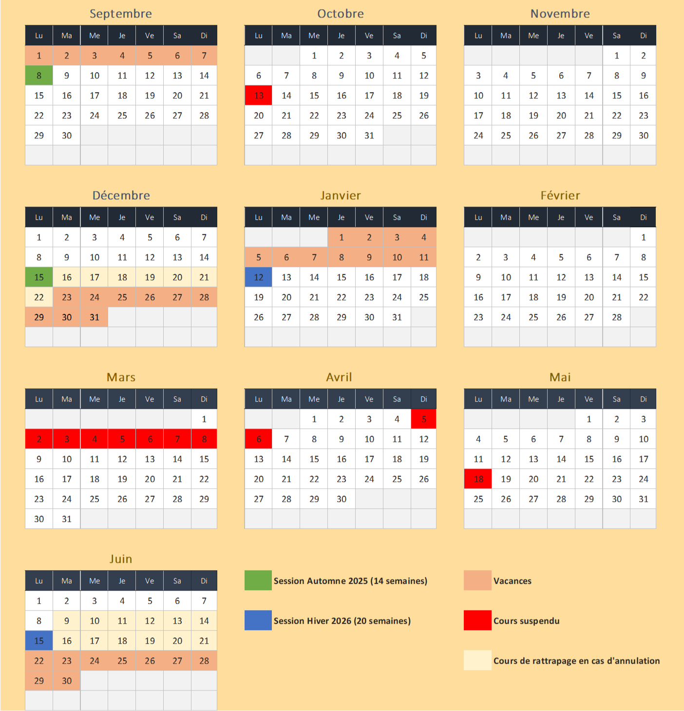 Session Hiver 2026 : 12 janvier au 15 juin 2026